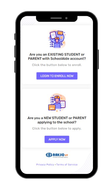 Navigate to “Are you an existing student or parent with SchoolAide Account?”.